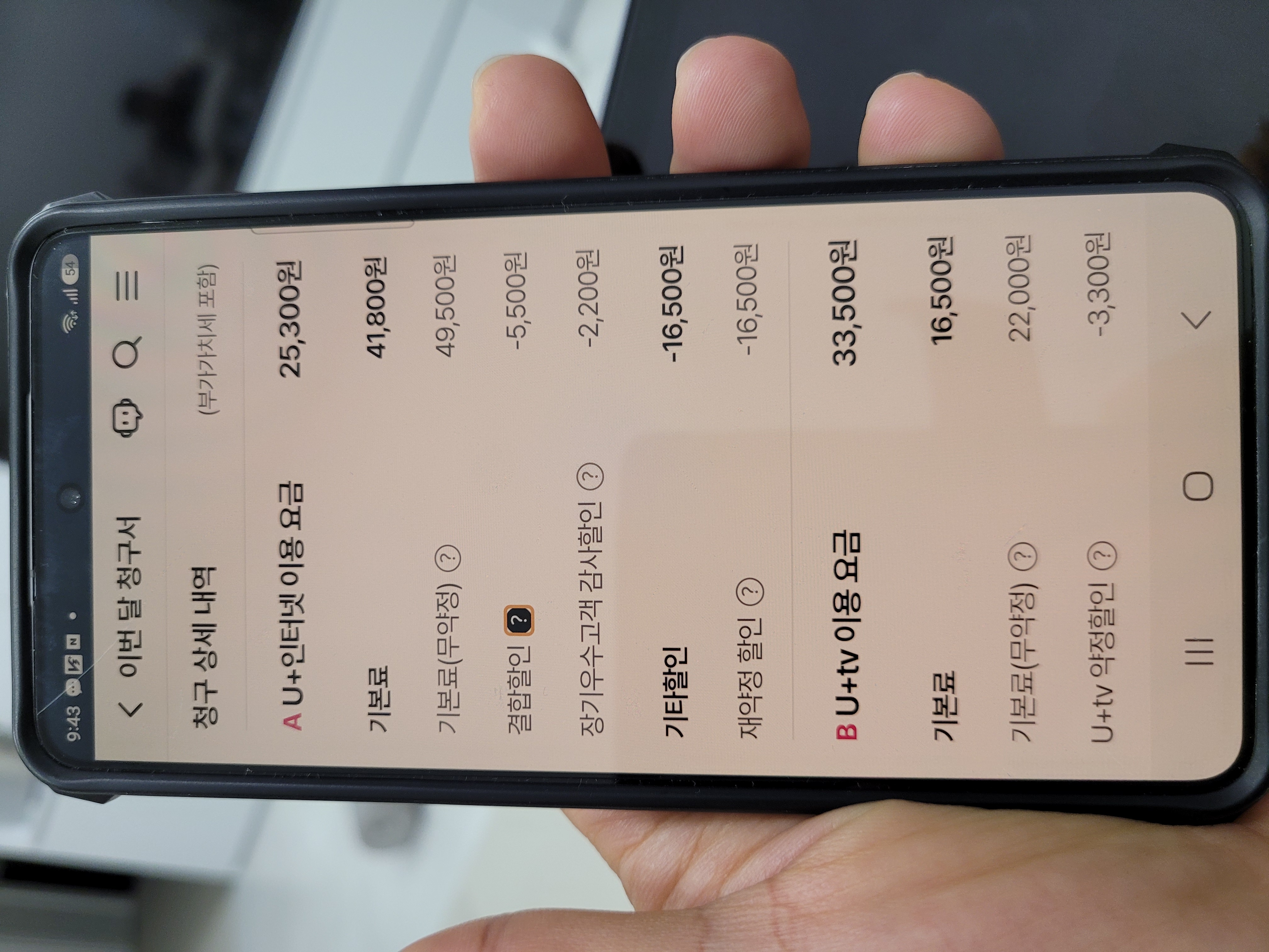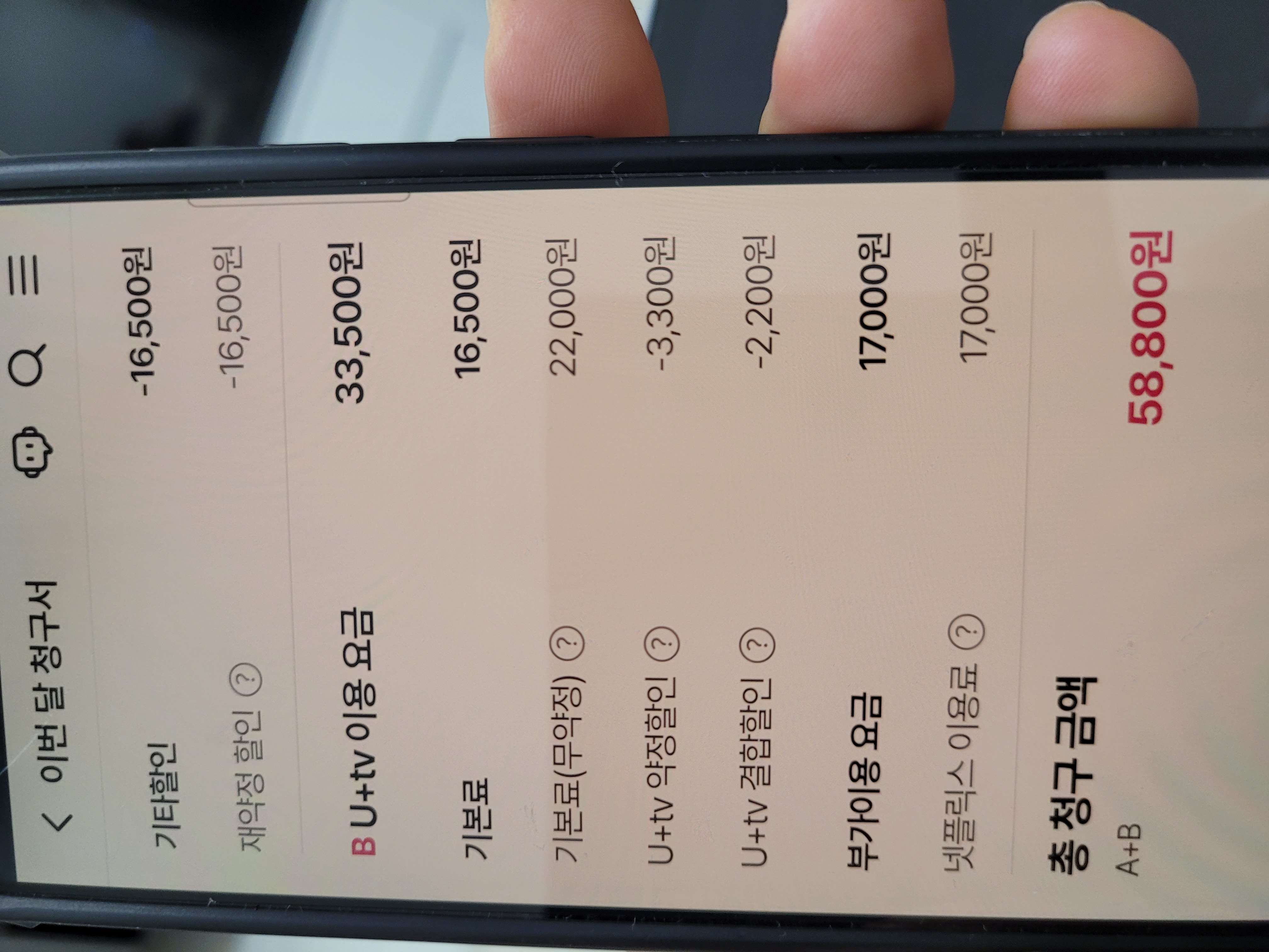 요금제는 각각 33900, 33000, 18000, 16900원입니다