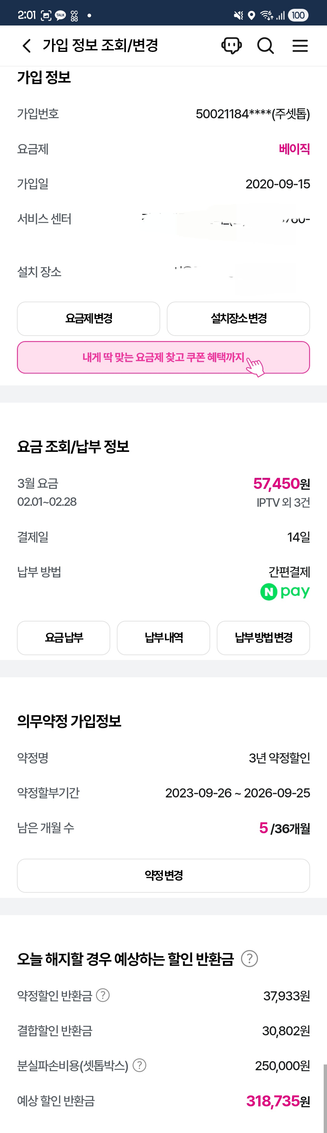 약정종료까지 5개월 가량 남아있습니다.(26년 9월 중순)