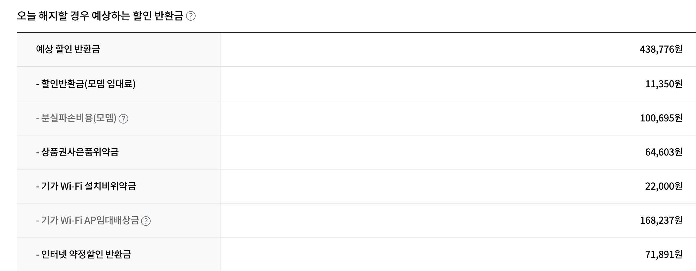 ① 할인반환금은 홈페이지에서 조회하셨을 텐데, 홈페이지 조회로 확인하는 금액은 "예상 금액"이에요. 정확한 비용은 LG유플러스 본사 고객센터와 통화로 알 수 있어서 고객센터로 꼭 확답을 받은 후에 해지 신청을 해주세요. 또한 고객센터에서 분실파손비용, 임대배상금을 포함한 금액으로 안내드리는 경우가 있어서요 ^^; 장비를 잘 반납했을 때 청구되는 비용으로 알려달라고 말씀해 주시겠어요~?