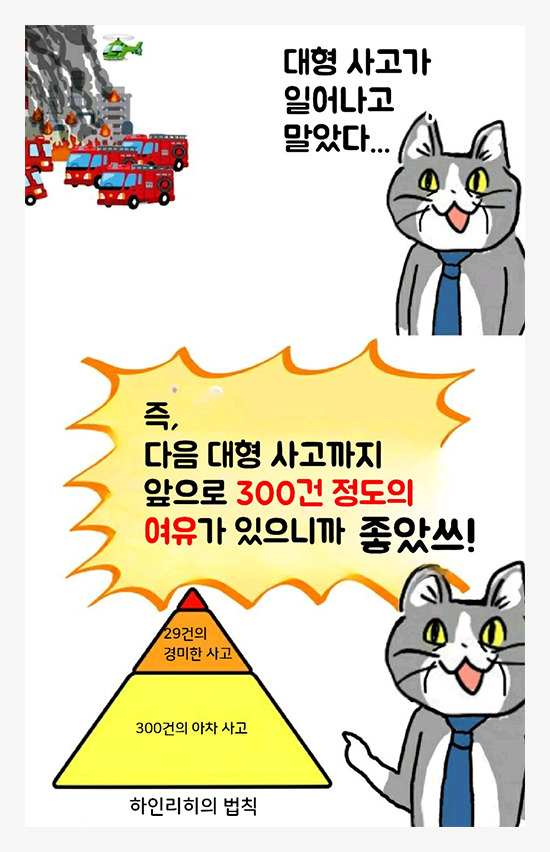 '하인리히 효과'라는 게 있습니다! (큼큼 아는 척 좀 해보겠습니다🧐) 작은 이상징후와 경고를 반복해서 무시하면 언젠가는 큰 사고로 터진다는, 산업재해 쪽에서 자주 쓰는 용어이죠.
